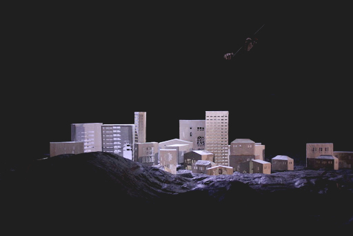 Landscapes of Our Tears by Collectif Kahraba text by Matei Visniec and scenography, the direction of Eric Deniaud 2016, an artistic collaboration on the reproduction of the landscape of the house evolution in Beirut. Including the frame of time and changes by the humans interfere, narrating the story of the prophet Jacob.